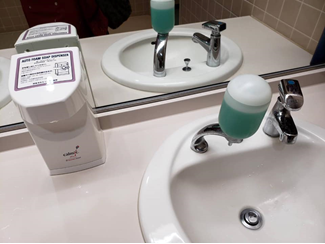 施設にハンドソープを選ぶ基準を聞いたところ、提携先が決まっているのでその中から選ぶ、価格を考えたうえ大量に入っている業務用を利用するとのことでした。それならば、提携先の洗剤会社に無添加無香料の業務用があってもいいのではないかと、S社にハンドソープに除菌剤と香料を入れない液体石けんを扱ってほしいと電話したところ、今のところ対応できないと断られました。多くの人が無添加無香料の石けん使用を望まなければ理解が得られないと感じました。